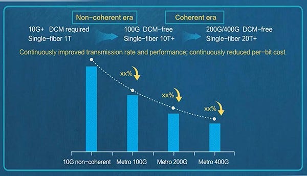 Continuously improved transmission rate and performance, continuously reduced per-bit cost.